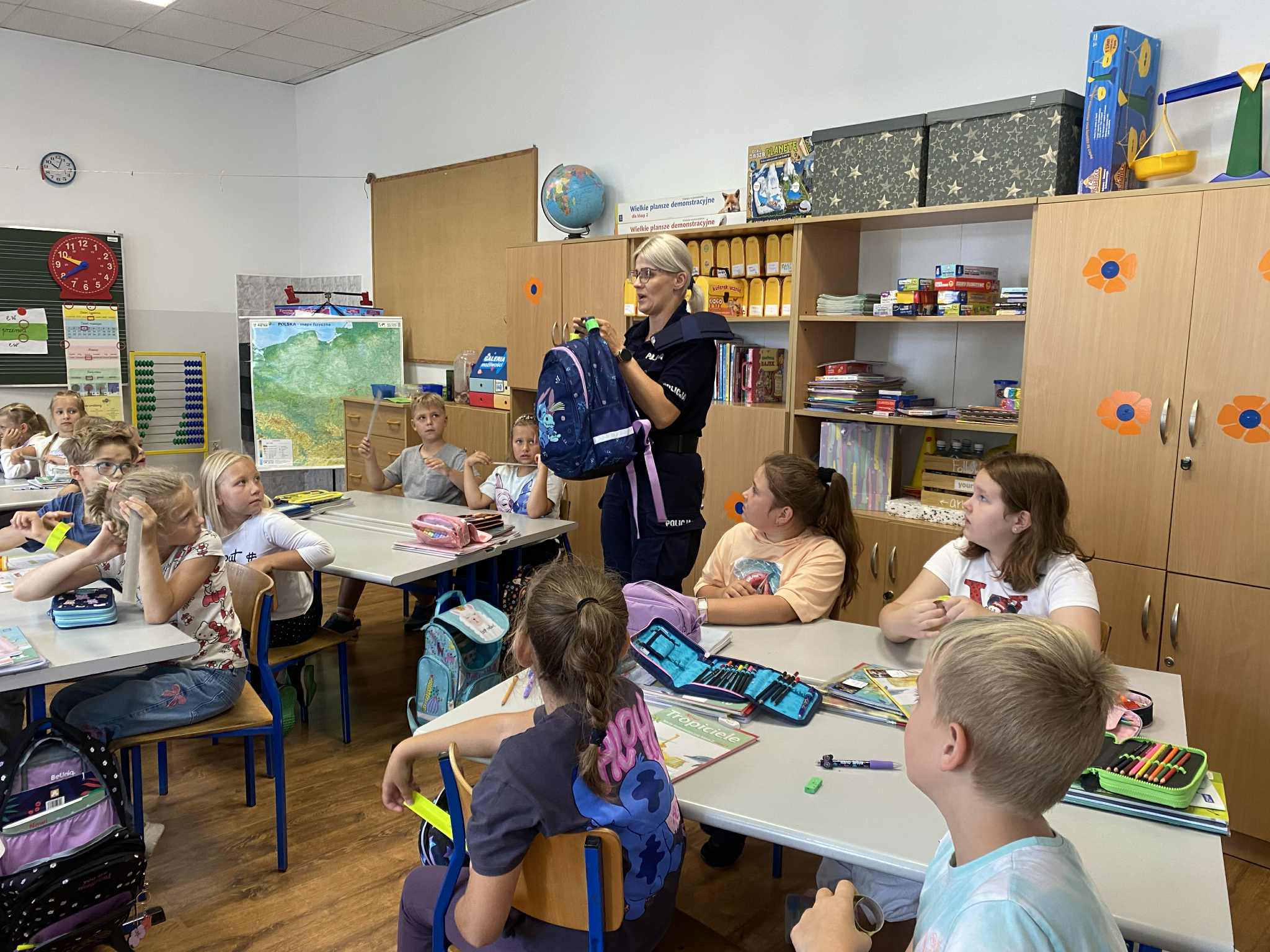 10 września odbyło się spotkanie uczniów klas 0-III z funkcjonariuszkami policji, poświęcone zasadom bezpieczeństwa na drodze do szkoły i do domu. Podczas prelekcji dzieci dowiedziały się: jak prawidłowo poruszać się po drogach, na co zwracać uwagę przy przechodzeniu przez jezdnię, i dlaczego warto nosić elementy odblaskowe. Panie Policjantki przypomniały również o zasadach zachowania w kontaktach z nieznajomymi oraz o tym, jak reagować w sytuacjach zagrożenia.