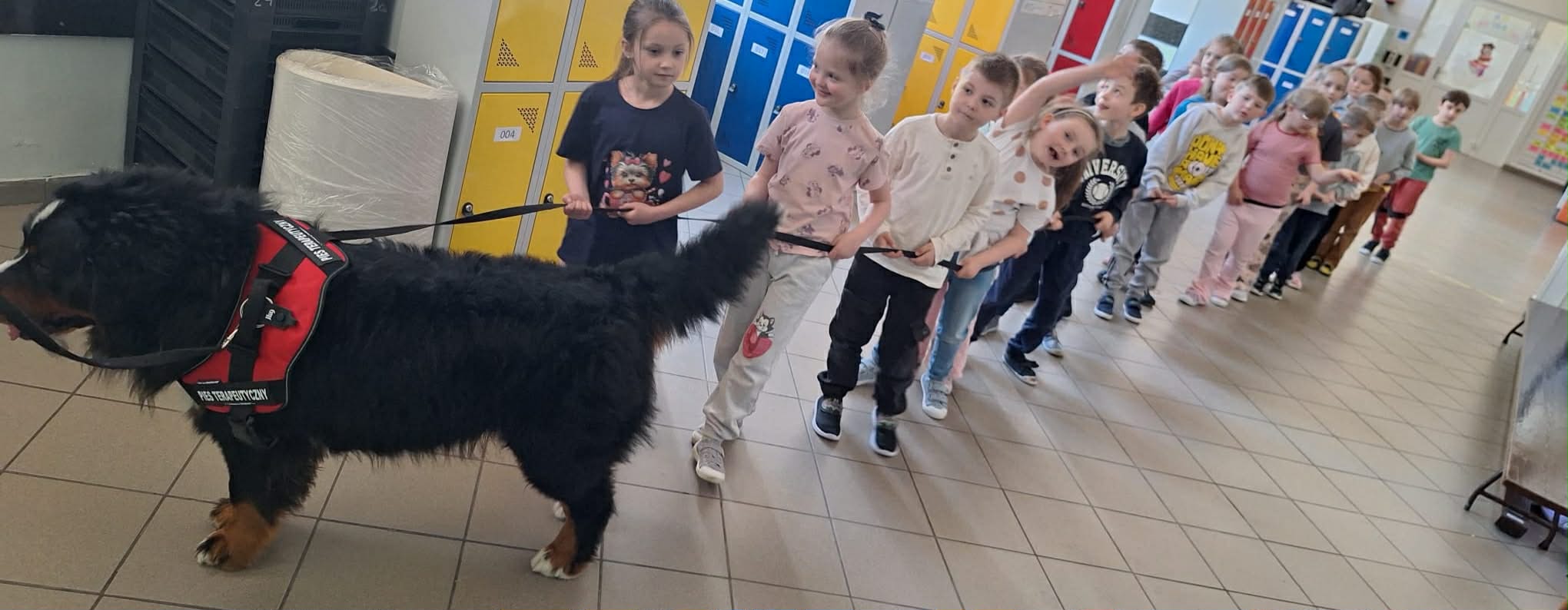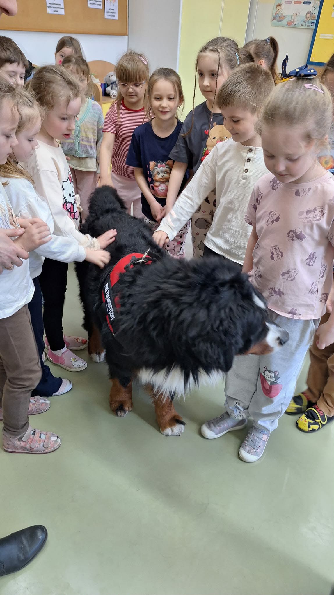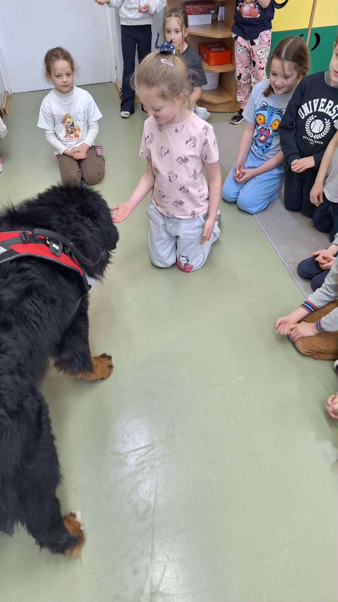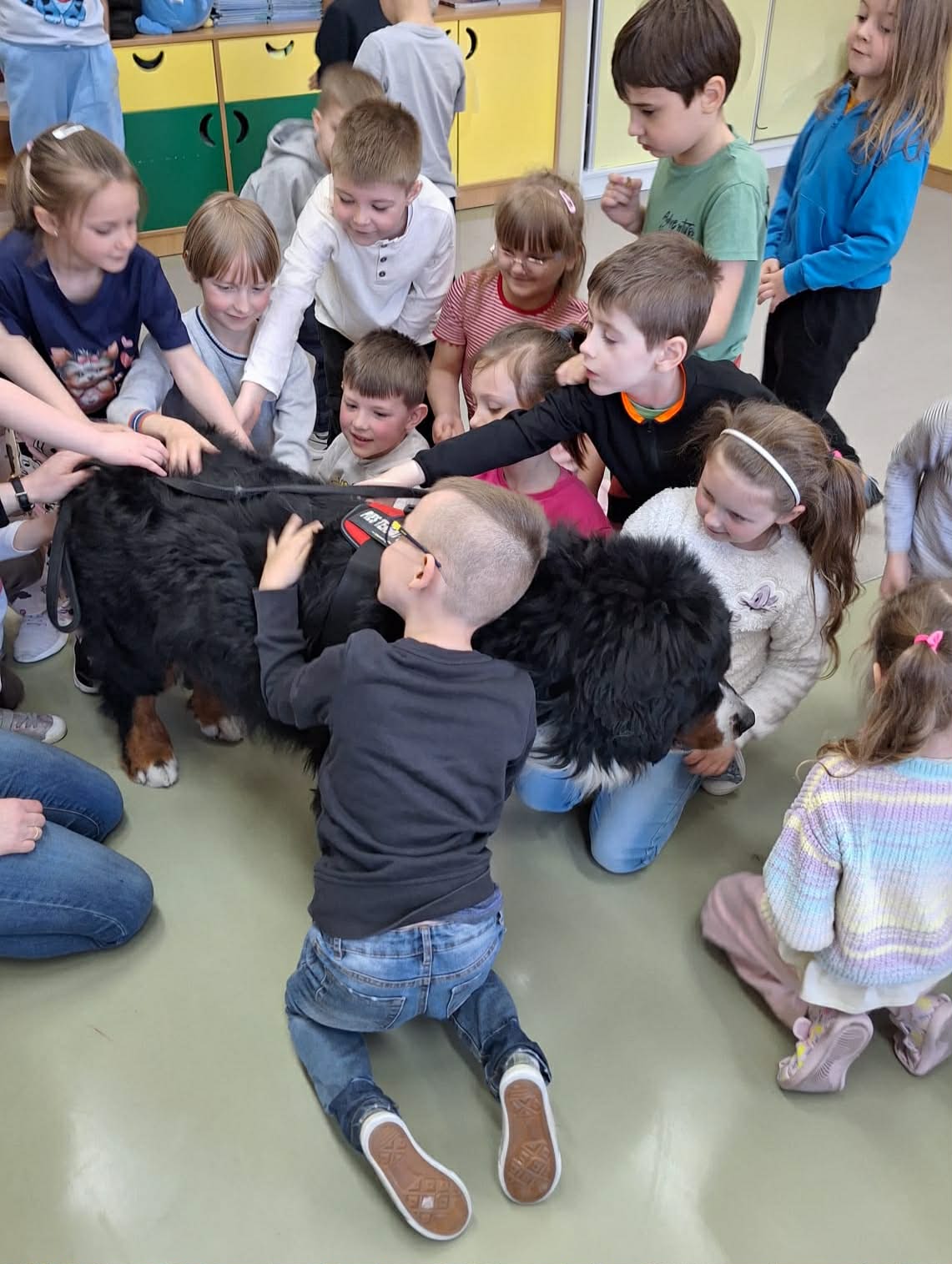 W grupie 0b odbyły się zajęcia z dogoterapii. Odwiedziła nas Pani Joanna ze swoim psem. Uczniowie dowiedzieli się na czym polega dogoterapia, a także mieli okazję do bezpośredniego kontaktu z psem. Spotkanie sprawiło wszystkim dużo radości i było wartościowym doświadczeniem.