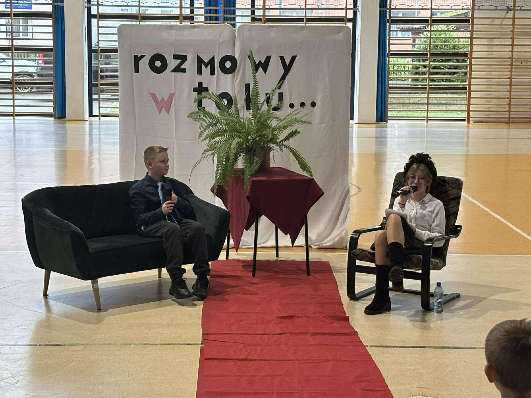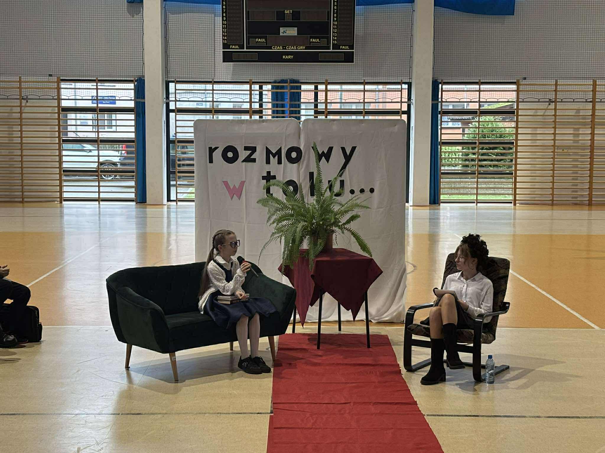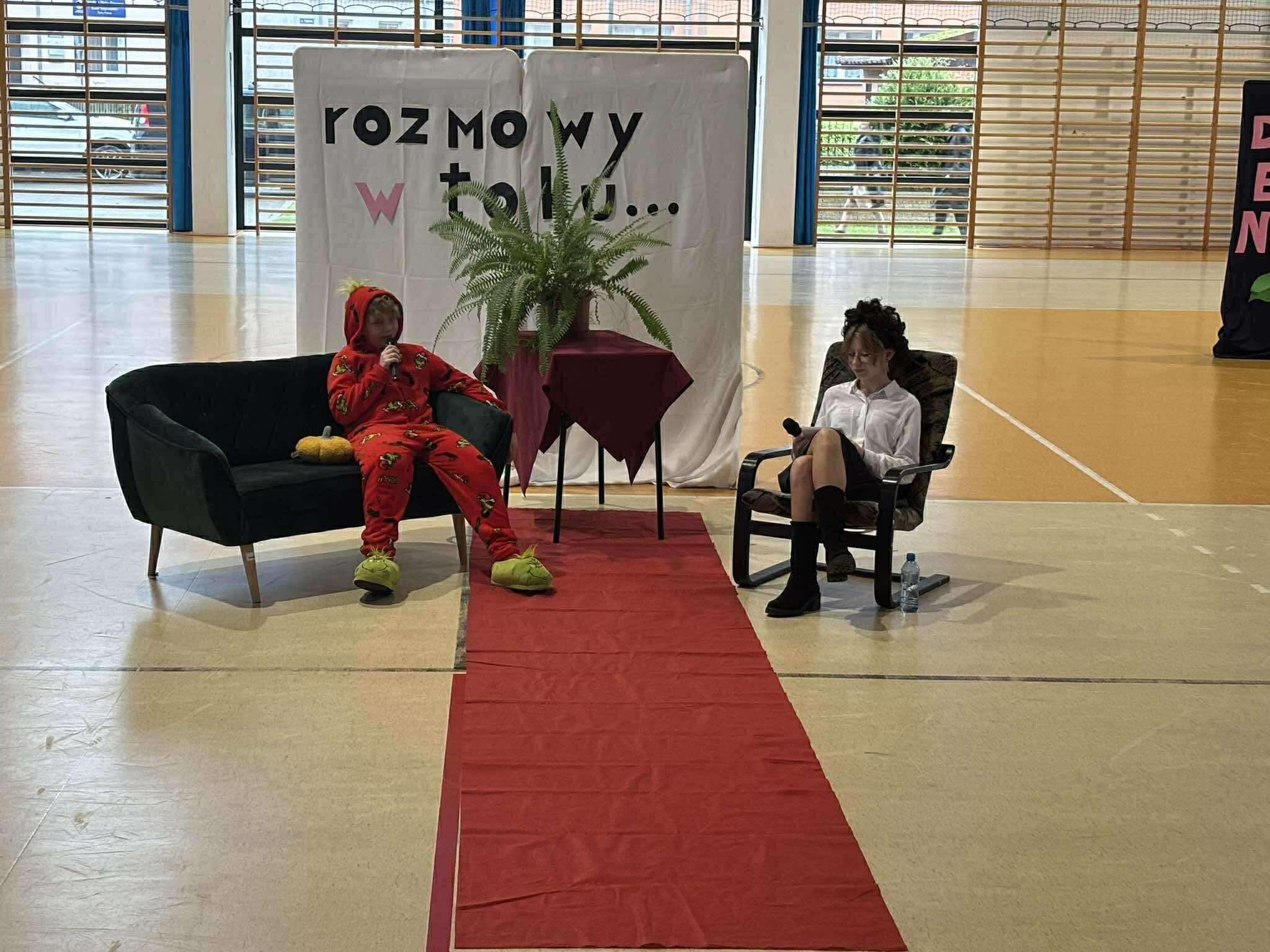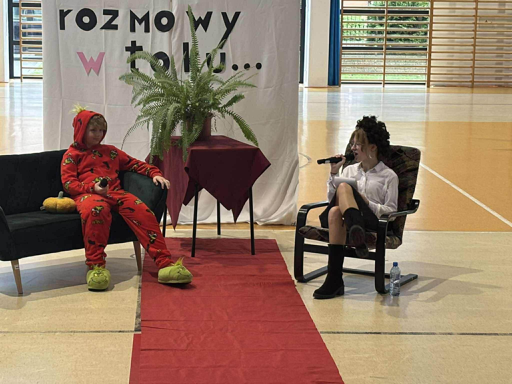 Zamiast tradycyjnej akademii, uczniowie przygotowali dla nauczycieli, pracowników administracji i obsługi pełne humoru i serdeczności przedstawienie w formie znanego programu telewizyjnego „Rozmowy w toku”.