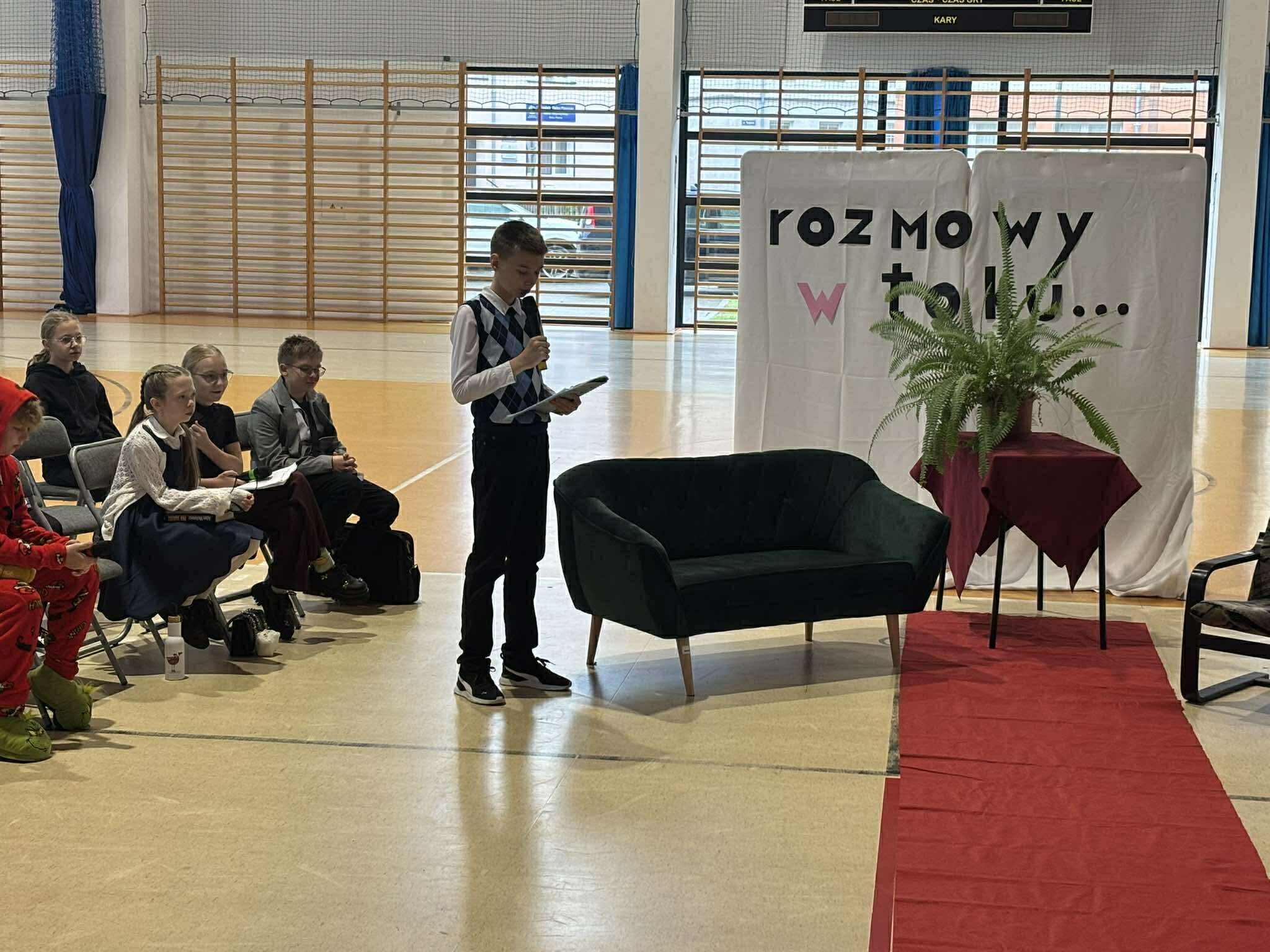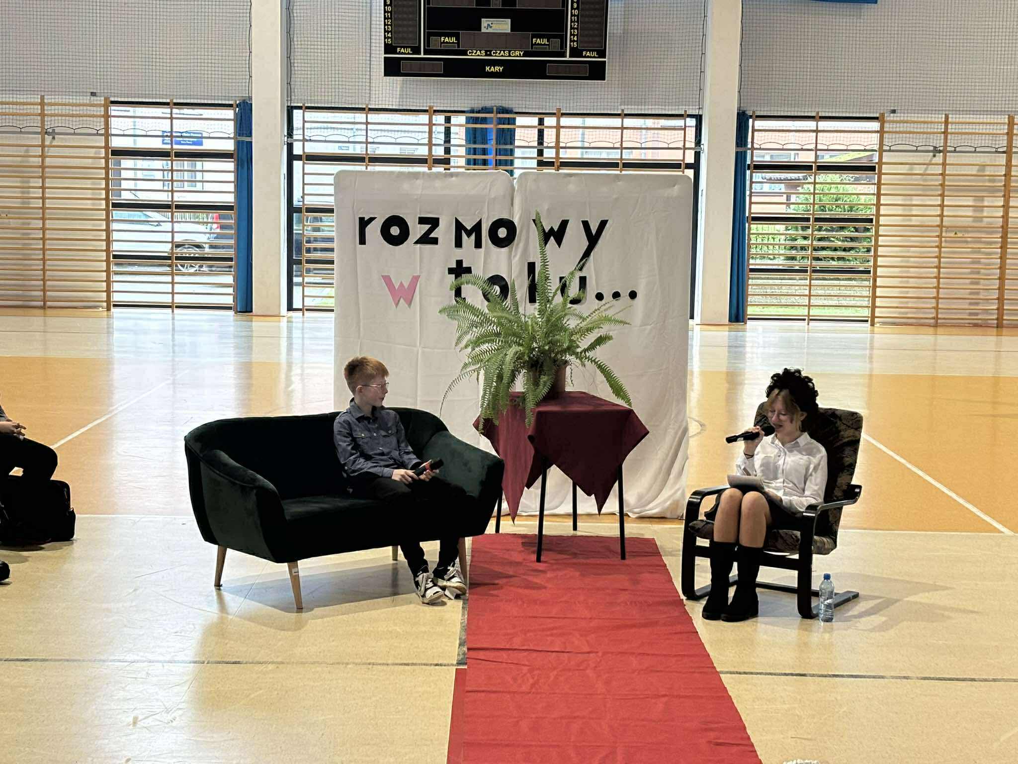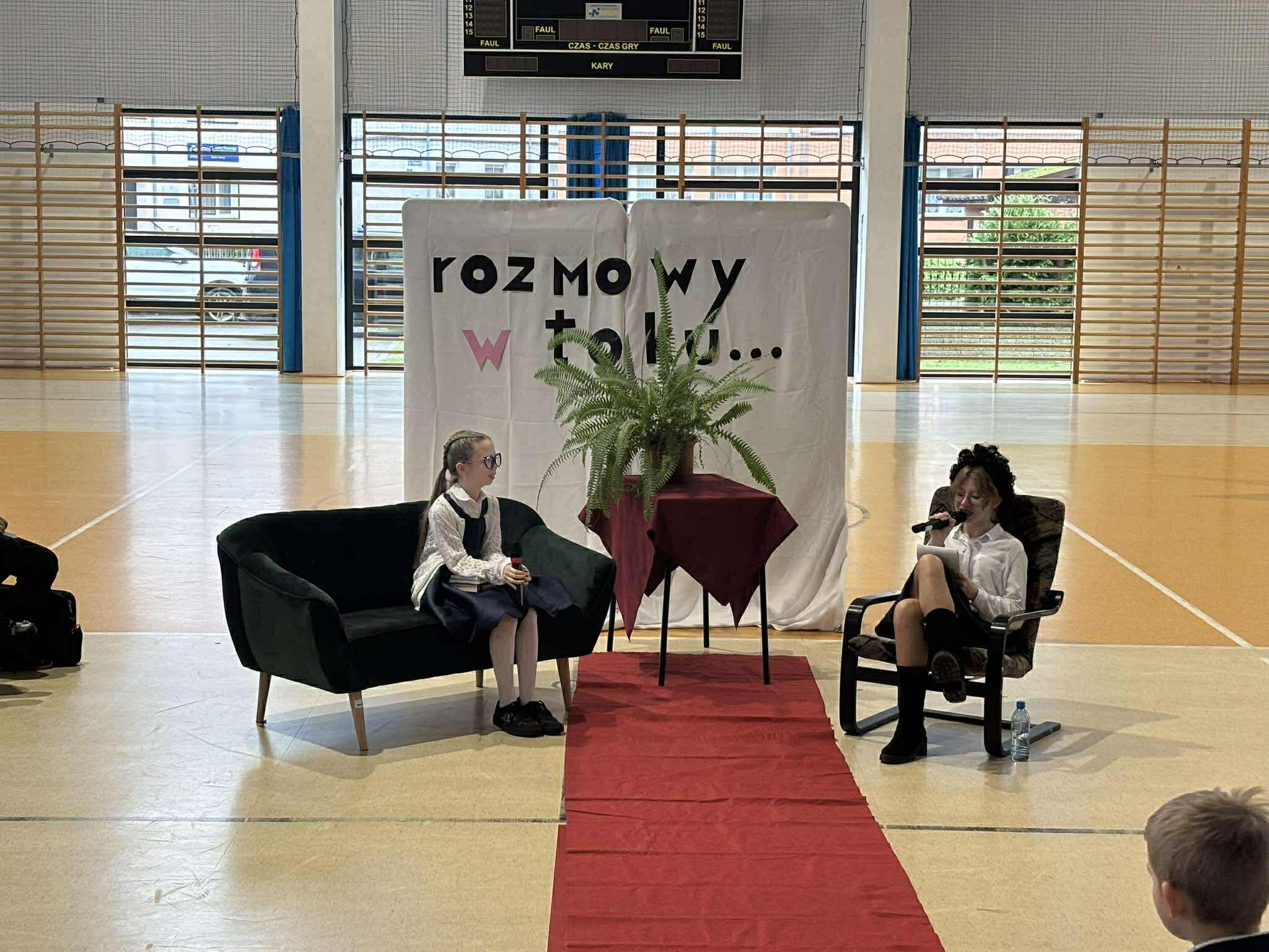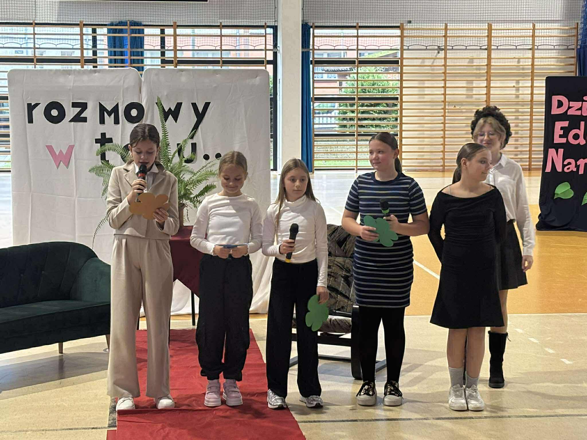Zamiast tradycyjnej akademii, uczniowie przygotowali dla nauczycieli, pracowników administracji i obsługi pełne humoru i serdeczności przedstawienie w formie znanego programu telewizyjnego „Rozmowy w toku”.