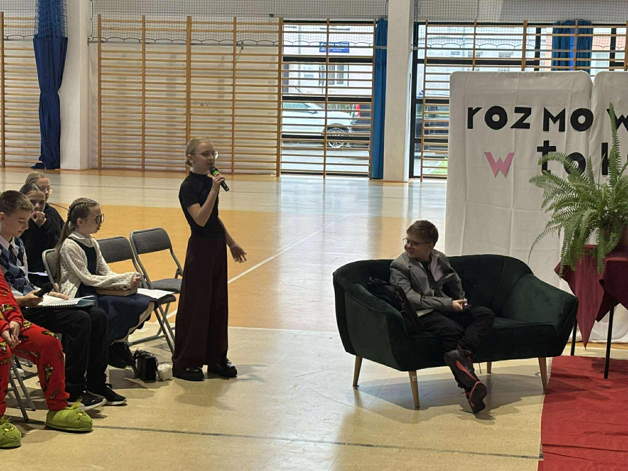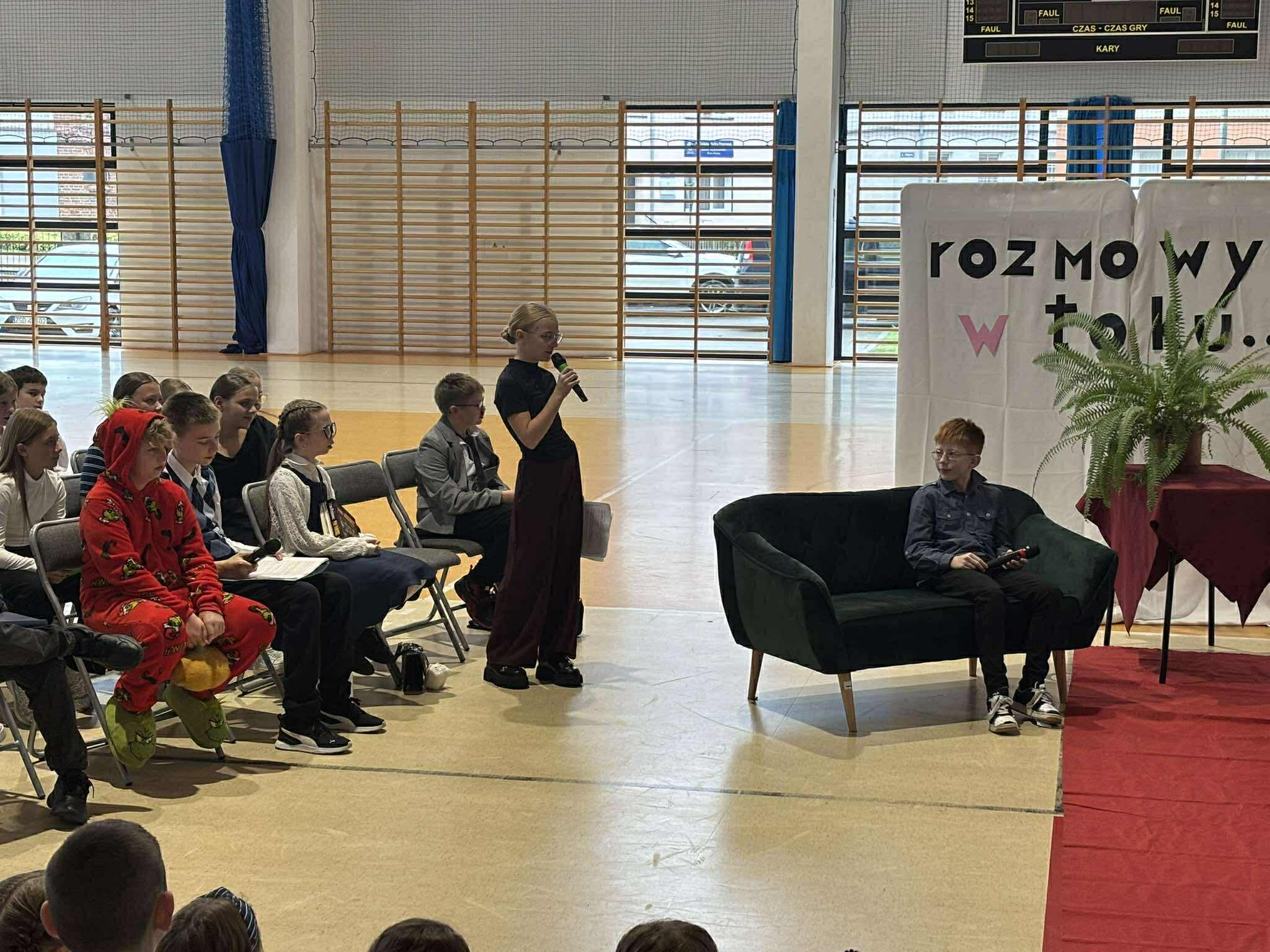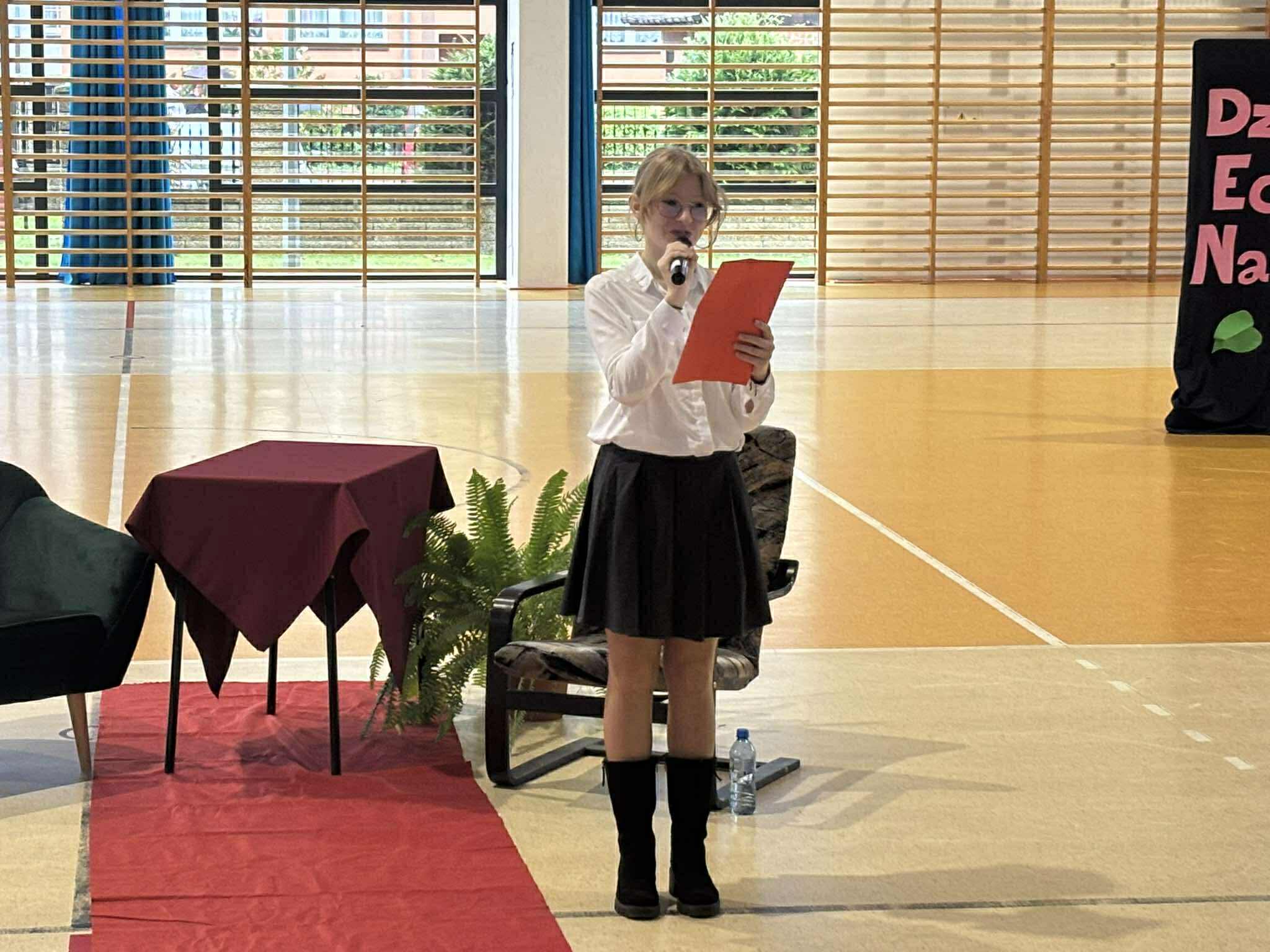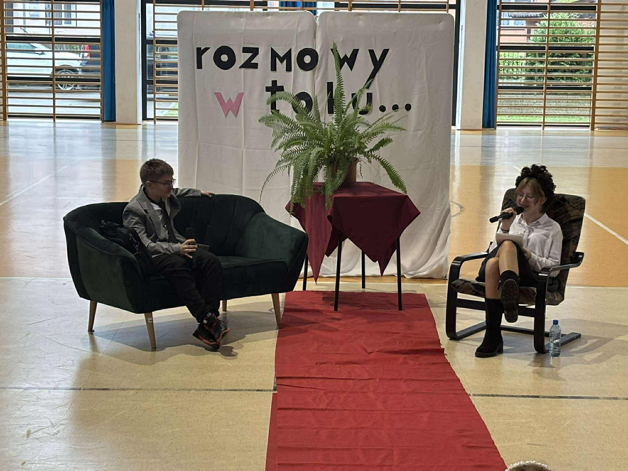 Zamiast tradycyjnej akademii, uczniowie przygotowali dla nauczycieli, pracowników administracji i obsługi pełne humoru i serdeczności przedstawienie w formie znanego programu telewizyjnego „Rozmowy w toku”.