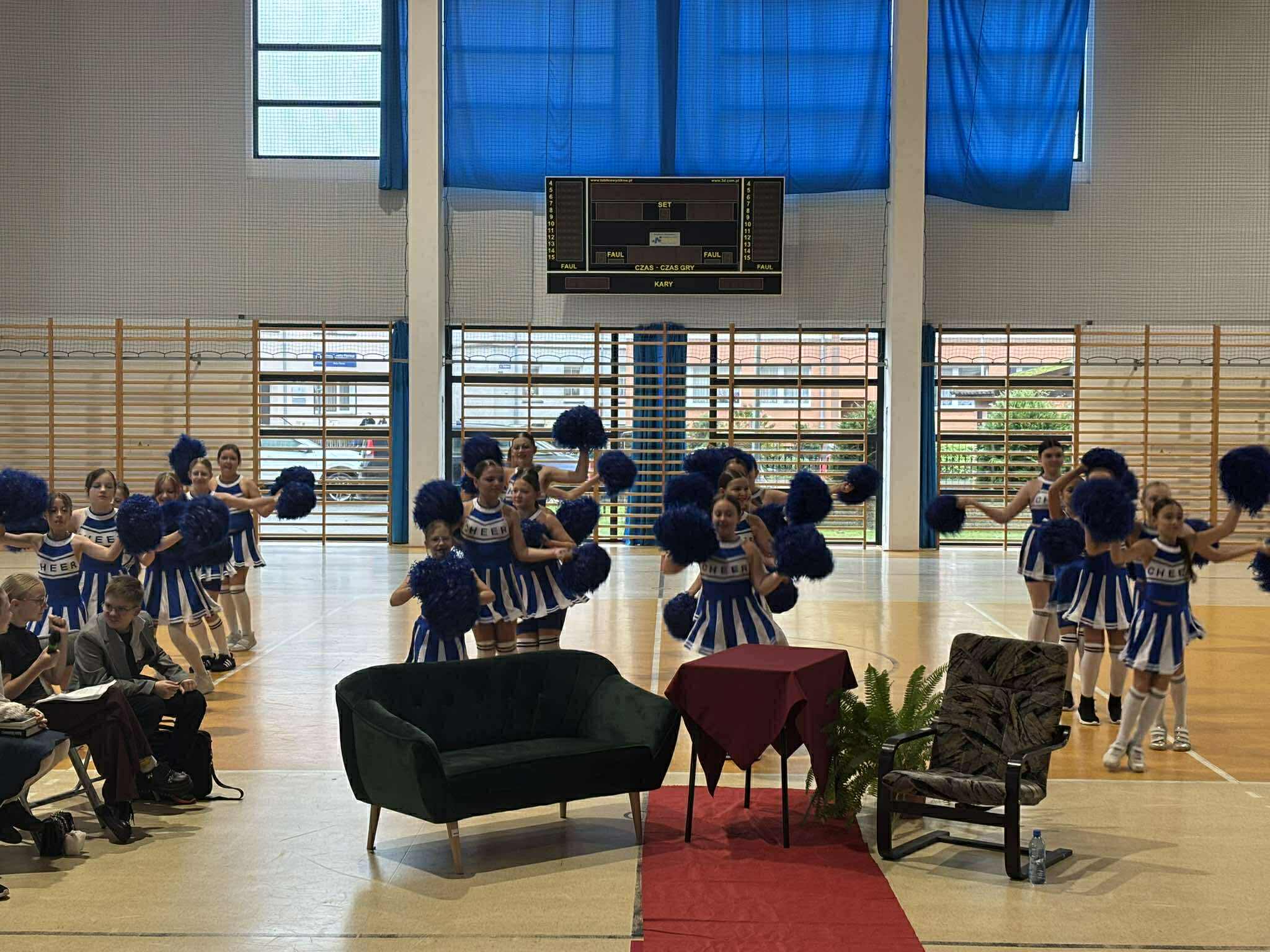 Uroczystość rozpoczęły nasze wspaniałe cheerleaderki, które dodały wszystkim energii i pozytywnej mocy, a następnie publiczność mogła podziwiać pokaz tańca towarzyskiego przygotowany specjalnie dla nauczycieli, wykonany przez tancerzy Szkoły Tańca ,, Iskra”.