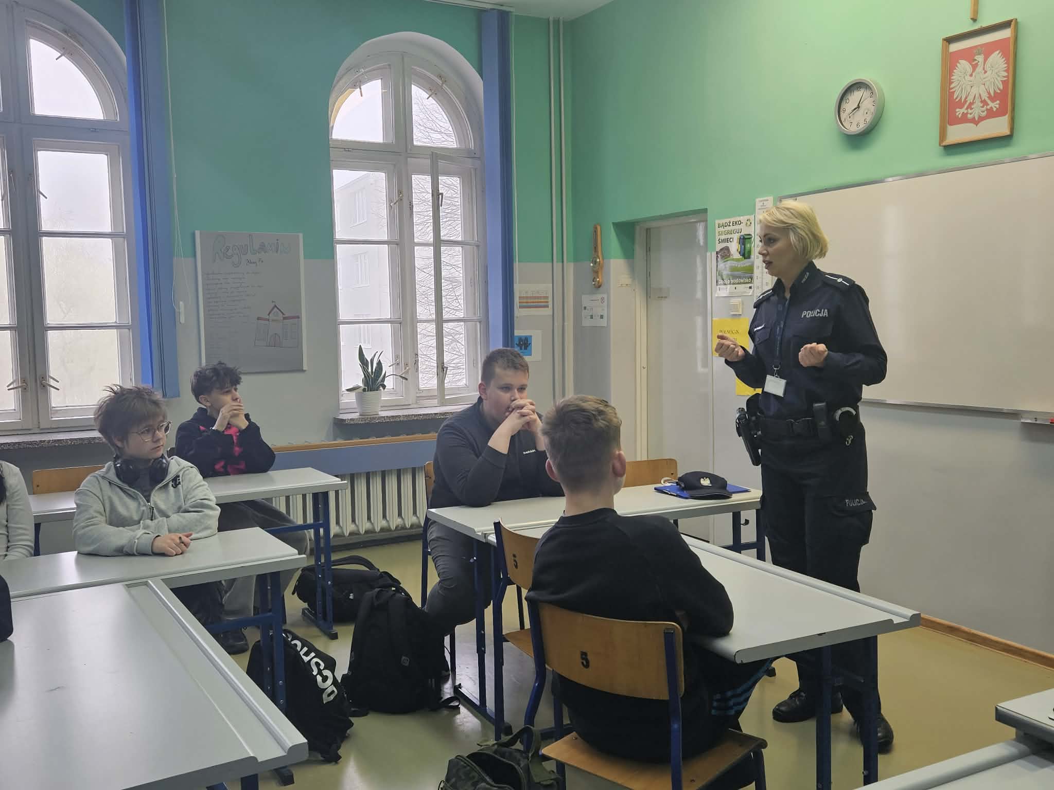 Dzisiaj uczniowie klasy 7a uczestniczyli w niezwykle ważnym spotkaniu z aspirant Anną Kurażyńską. Głównym tematem rozmowy była odpowiedzialność karna nieletnich. Podczas prelekcji uczniowie dowiedzieli się: Jakie zachowania definiujemy jako demoralizujące. Jakie są prawne konsekwencje naruszania norm społecznych i prawnych przez osoby niepełnoletnie. Czym jest cyberprzemoc i jak reagować na agresję w internecie. Spotkanie miało charakter profilaktyczny i pozwoliło młodzieży lepiej zrozumieć wpływ ich decyzji na przyszłość. Serdecznie dziękujemy Pani aspirant za przyjęcie zaproszenia oraz przekazanie wielu wartościowych i praktycznych informacji. Klasa 7a wraz z wychowawczynią.![]()