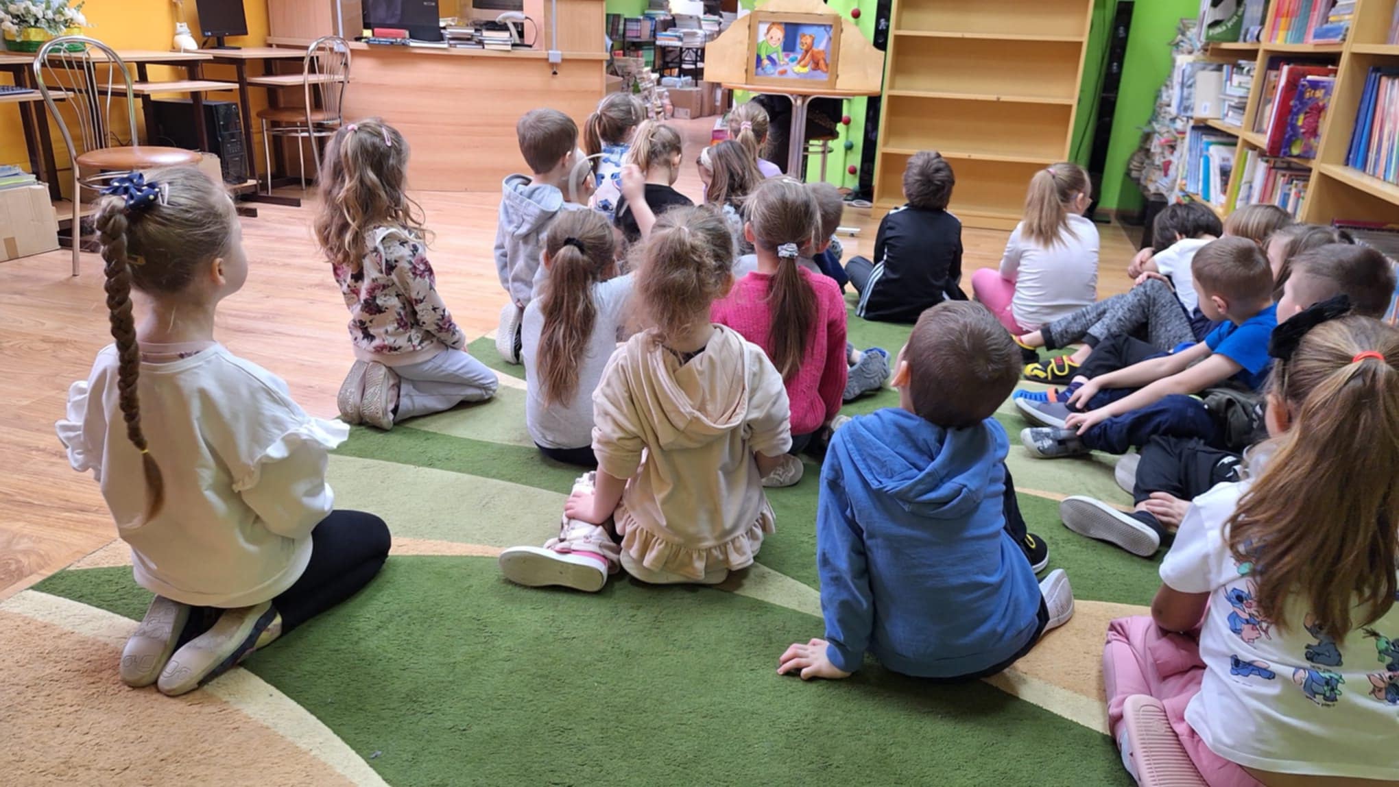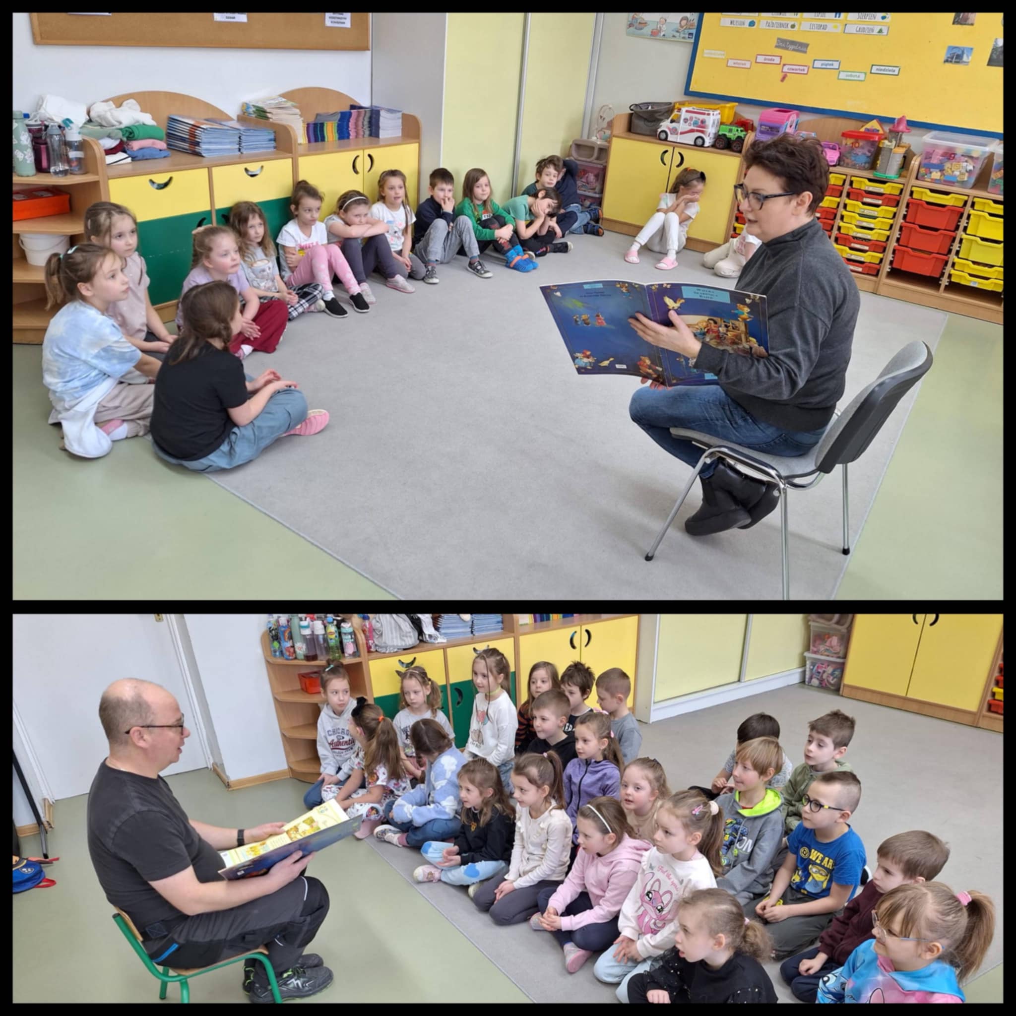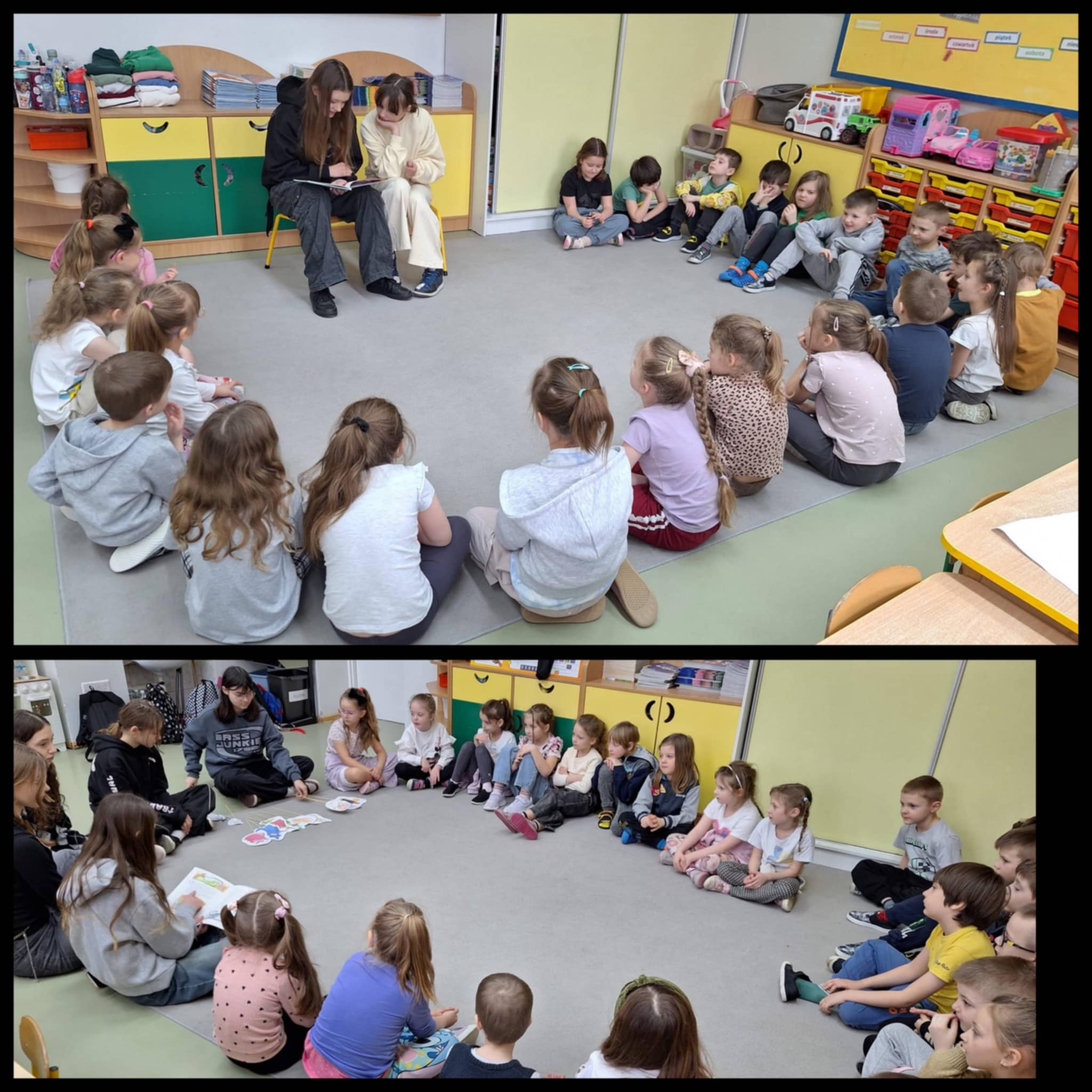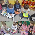 W minionym tygodniu uczniowie z grupy 0b realizowali blok tematyczny poświęcony literaturze dziecięcej. Dzieci uczyły się zasad poszanowania książek i dzieliły się swoimi ulubionymi tytułami. W ramach zajęć grupa odwiedziła bibliotekę szkolną, gdzie wysłuchała głośnego czytania. Zerówkowiczów odwiedzili również wyjątkowi goście; uczennice klasy 7, mama Helenki oraz pan Marcin, którzy wprowadzili dzieci w świat bajek i baśni. Starsze koleżanki z klasy 6 przygotowały dzieciom niespodziankę – czytanie połączone z teatrzykiem w języku angielskim. Była to okazja do osłuchania się z językiem poprzez zabawę. Serdecznie dziękujemy wszystkim gościom za zaangażowanie i poświęcony czas.