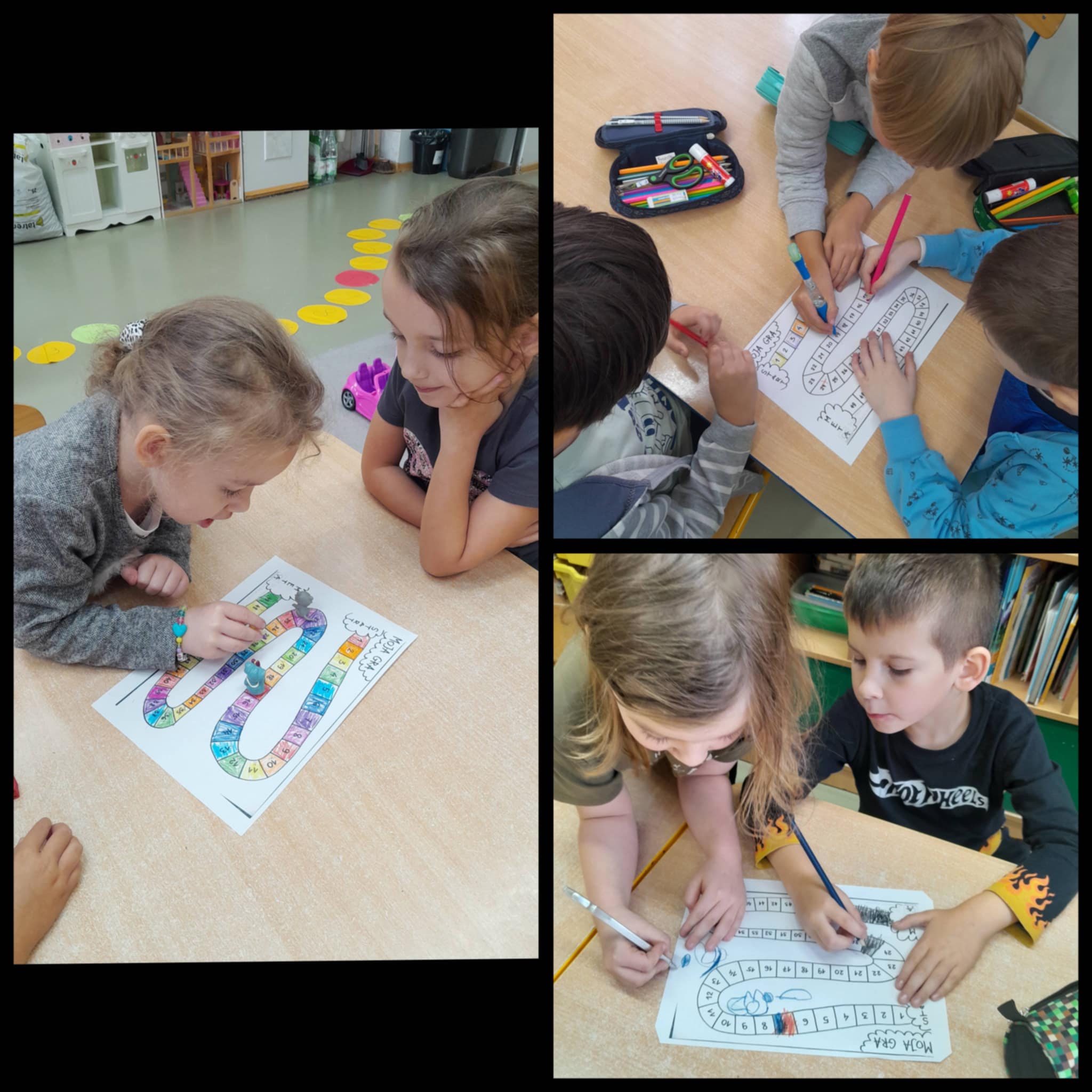 10 października grupa 0b zamieniła salę w prawdziwe królestwo planszówek. Dzieci miały okazję zaprezentować swoje gry – od klasycznych układanek i gier logicznych po kolorowe plansze rozwijające spostrzegawczość, koncentrację i współpracę. Zerówkowicze grali ze sobą w przyniesione gry, dzielili się nimi, uczyli się zasad i wspólnie przeżywali emocje – zarówno te związane z wygraną, jak i z porażką.