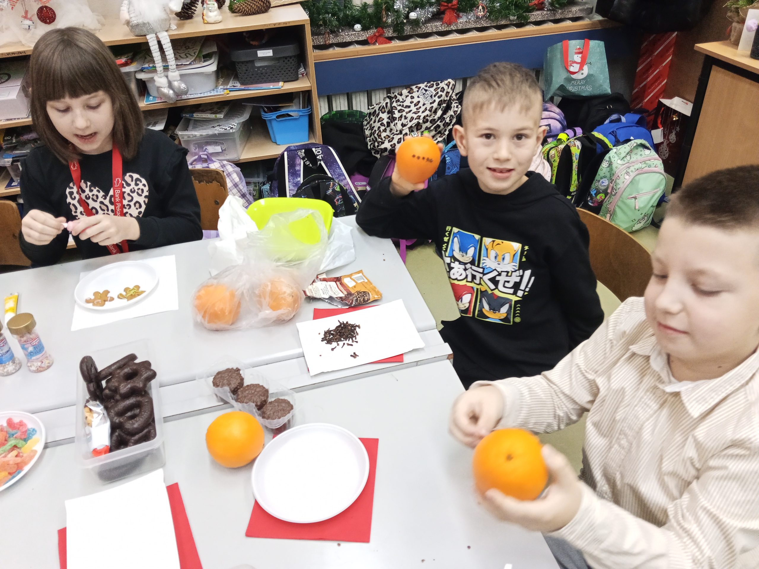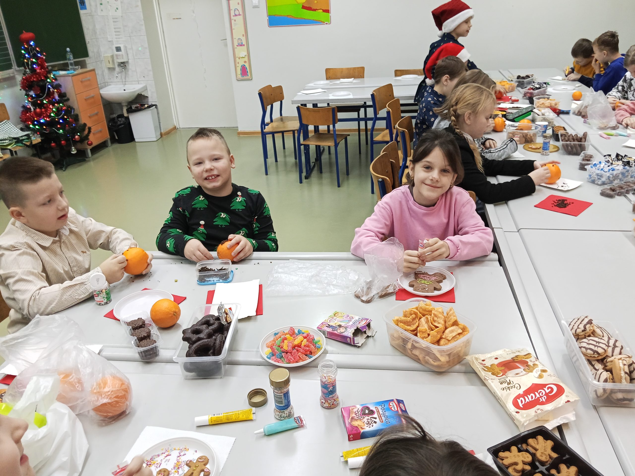Dnia 19 grudnia klasa 2b zorganizowała wigilijne spotkanie. Uczniowie przygotowali swoją salę a także stół pełen smakołyków. Miła i radosna atmosfera pozwoliła wczuć się uczniom w klimat nadchodzących Świąt. Wigilia klasowa była świetną okazją na zacieśnienie więzi z kolegami oraz wychowawcą. Podczas spotkania dzieci dekorowały pierniki i ozdabiały pomarańcze goździkami. Złożyliśmy sobie życzenia a także zaśpiewaliśmy kolędy.
